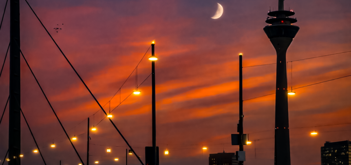 Daily Dose of Foto März 26, 2026 Rheinkniebrücke Düsseldorf Maus Auf der Rheinkniebrücke mit dem Bike und einer KI