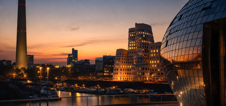 Daily Dose of Foto März 15, 2026 Medienhafen im Scifi Look Medienhafen in Düsseldorf im Scifi Look, Gehry Bauten und