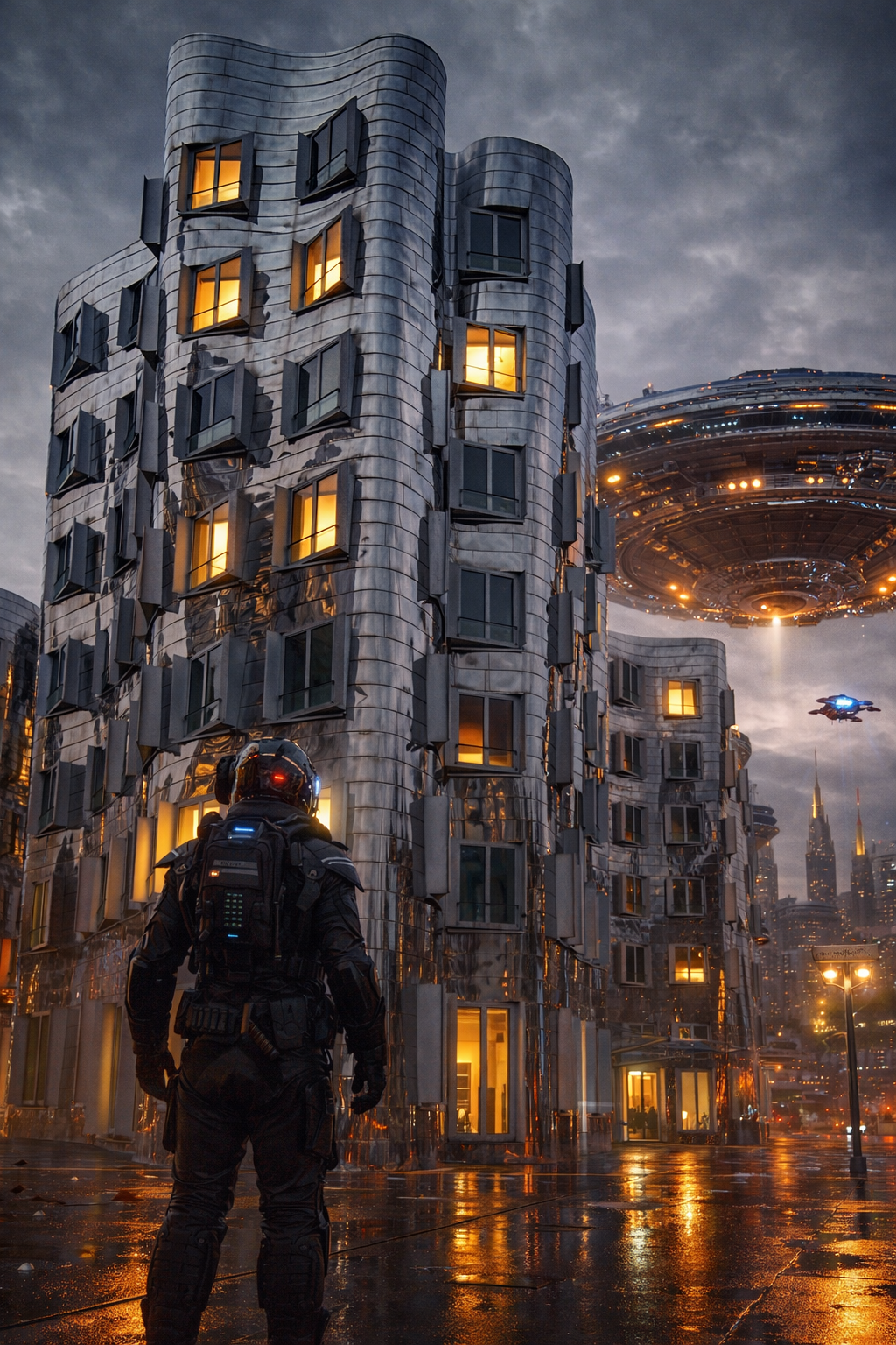 Medienhafen im Scifi Look von Fotosnet · März 15, 2026 Medienhafen in Düsseldorf im Scifi Look, Gehry Bauten und